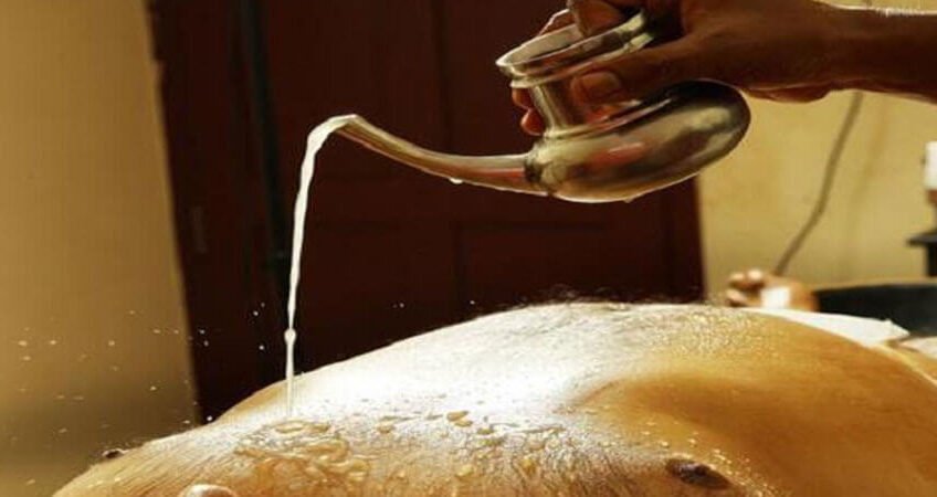 Dhanyamladhara is a type of Sweda (Sudation) therapy. This comes under Parisheka sweda. Pouring of hot kashayam/thailam/ghrutham/kanji etc liquid over the body from a specific height is known as Parisheka sweda.