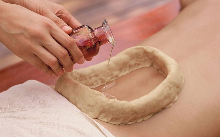 Kati Vasti is a traditional Ayurvedic therapy that involves the application of warm herbal oil on the lower back region. This therapeutic procedure is designed to alleviate various conditions affecting the lower back, such as chronic pain, stiffness, muscle spasms, and inflammation. The term “Kati” refers to the lower back region, while “Vasti” means a container or a retaining structure. During a Kati Vasti session, a well of dough made from black gram or whole wheat flour is formed on the lower back, creating a boundary, and warm medicated oil is poured and retained within this boundary for a specific duration.